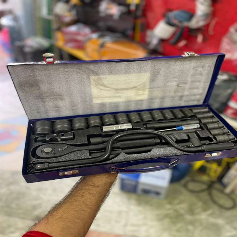 جعبه بکس 26 پارچه فشار قوی هیلتی (مشکی) شامل : بکس تکی از سایز 8 تا 32 هندلی جغجغه واسطه کوتاه و بلند لغلغه کشویی و ... در یک جعبه فلزی تقدیم میشود.